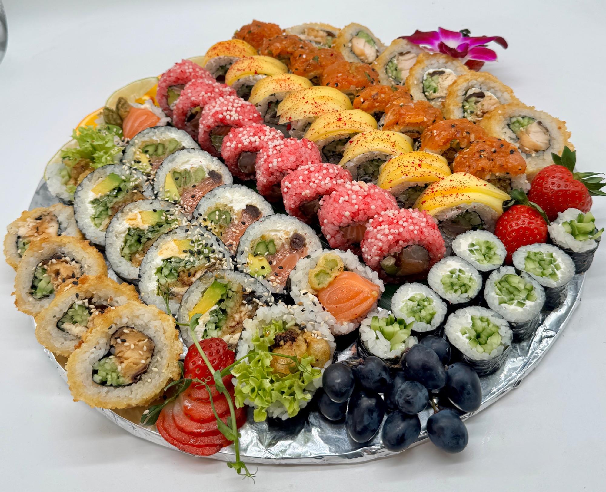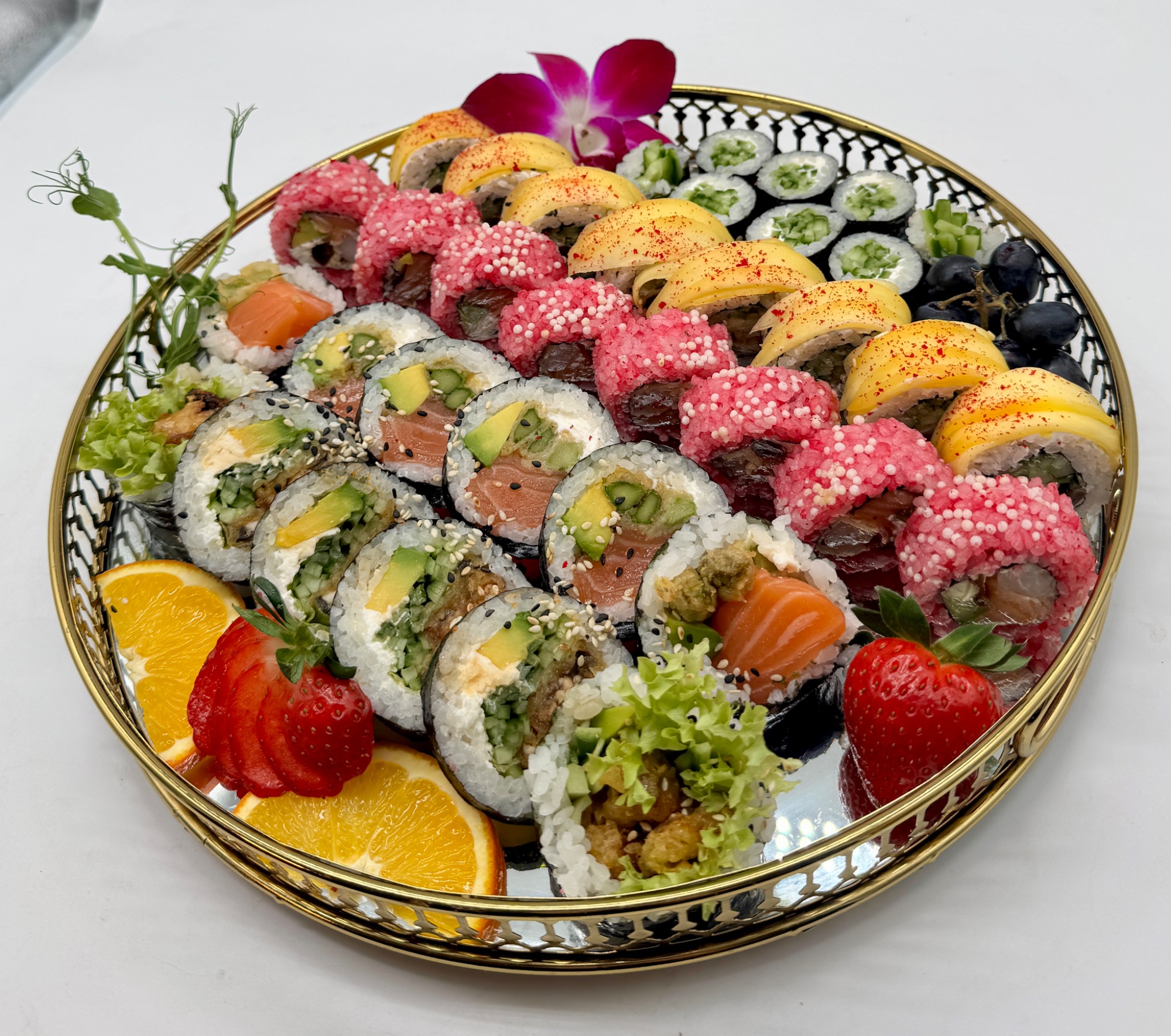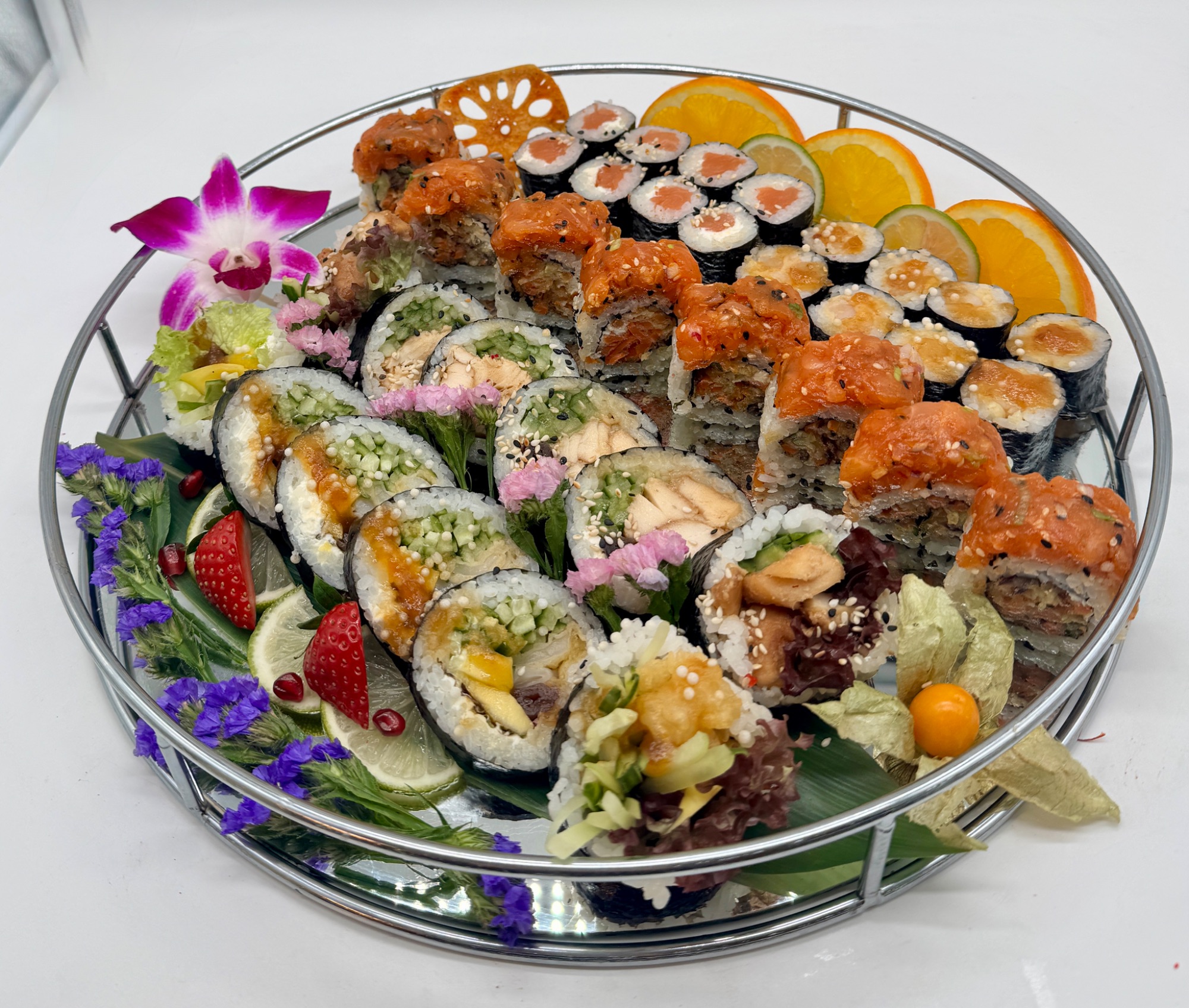 Każdy zestaw będzie pięknie ozdobiony, polany dedykowanymi sosami oraz posypany sezamem.